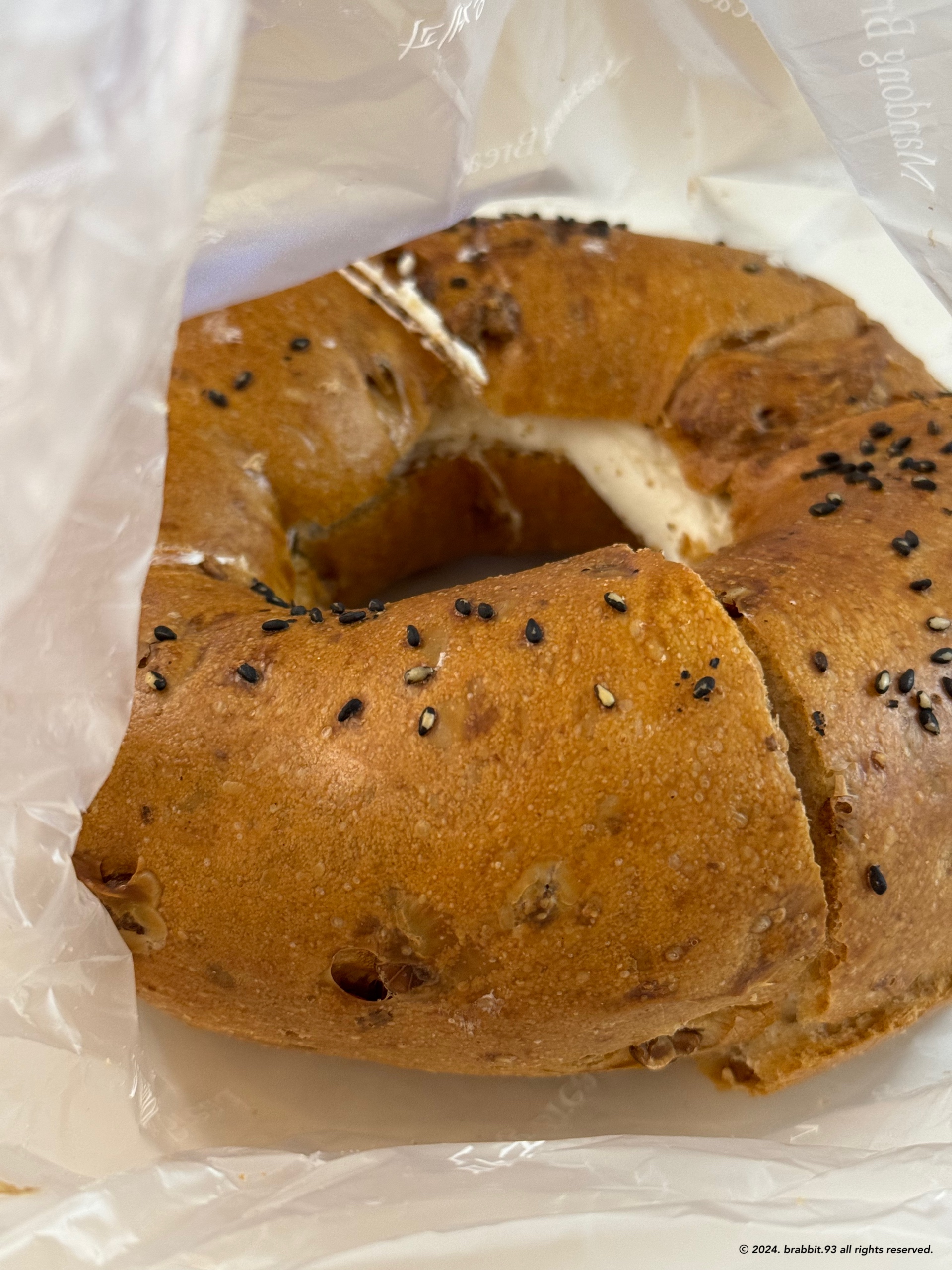 크림치즈가 촉촉한데 빵이 눅눅하지 않고 빠삭고소하게 씹히는 게 강점임