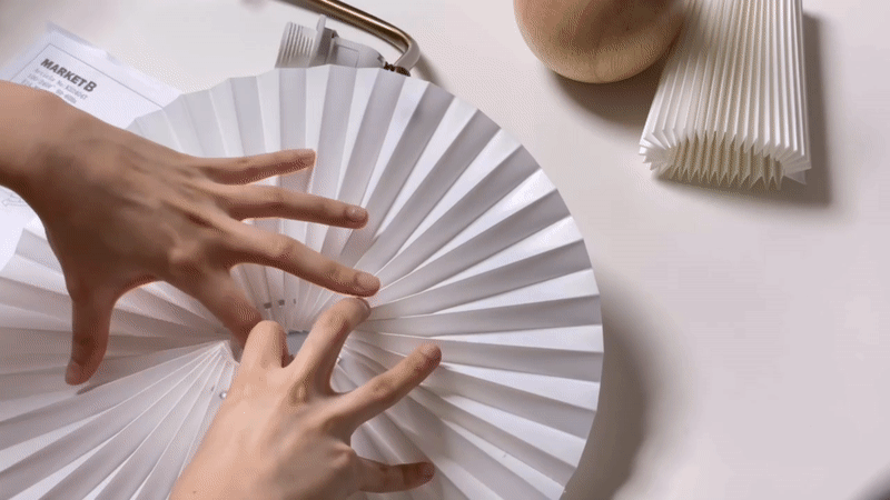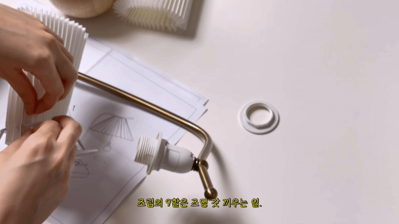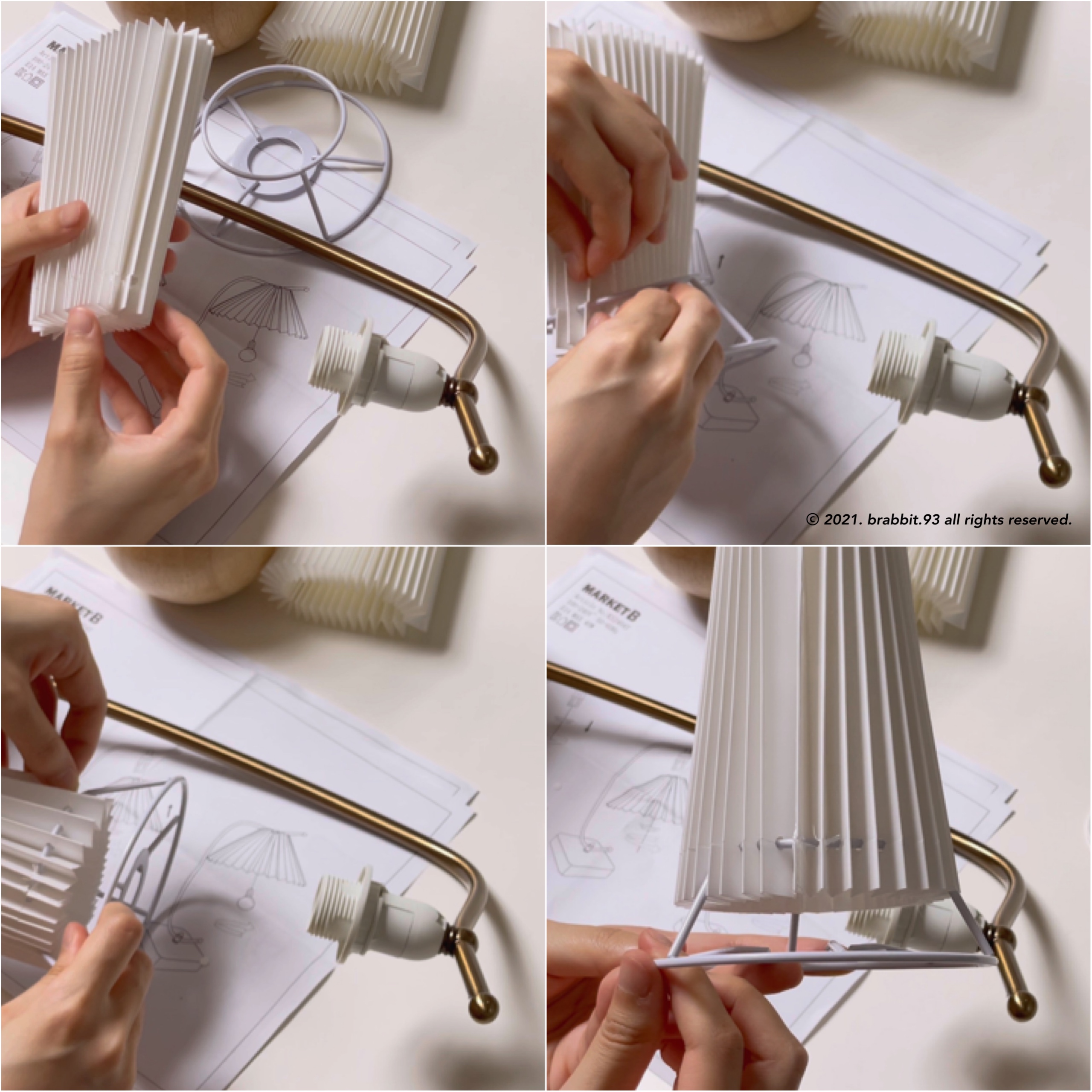머리부분에 동그란 고리를 마저 빼주고 플리츠 갓을 넣은 뒤
