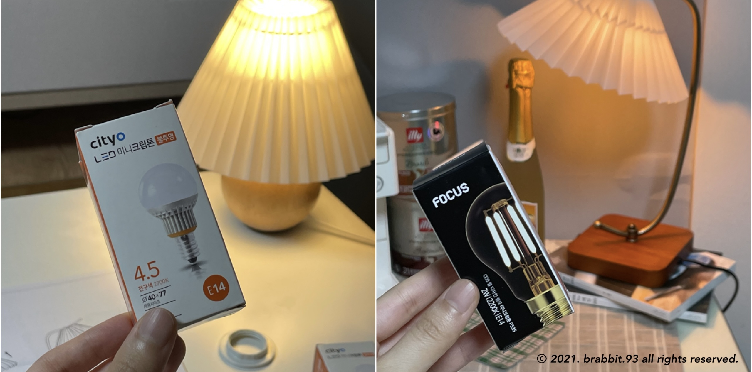 그리고 난 따뜻한 주황빛이 좋기 때문에 켈빈 값이 낮은 2,300K~3,000K 수치에 가까운 전구를 골랐다.