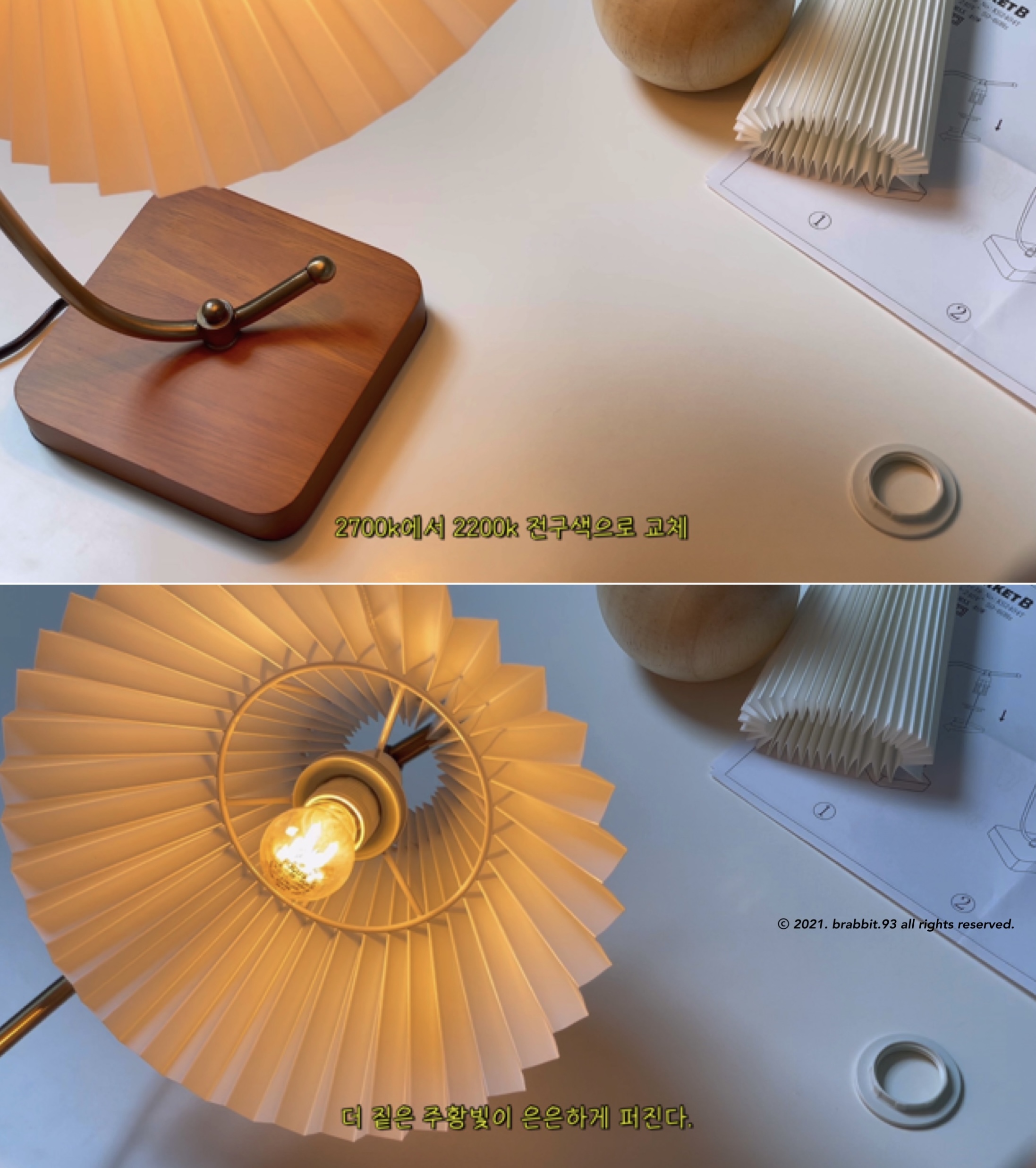 2700K 전구를 끼웠다가 더 진한 주황빛이 어울릴 것 같아서 2200K로 교체했다.