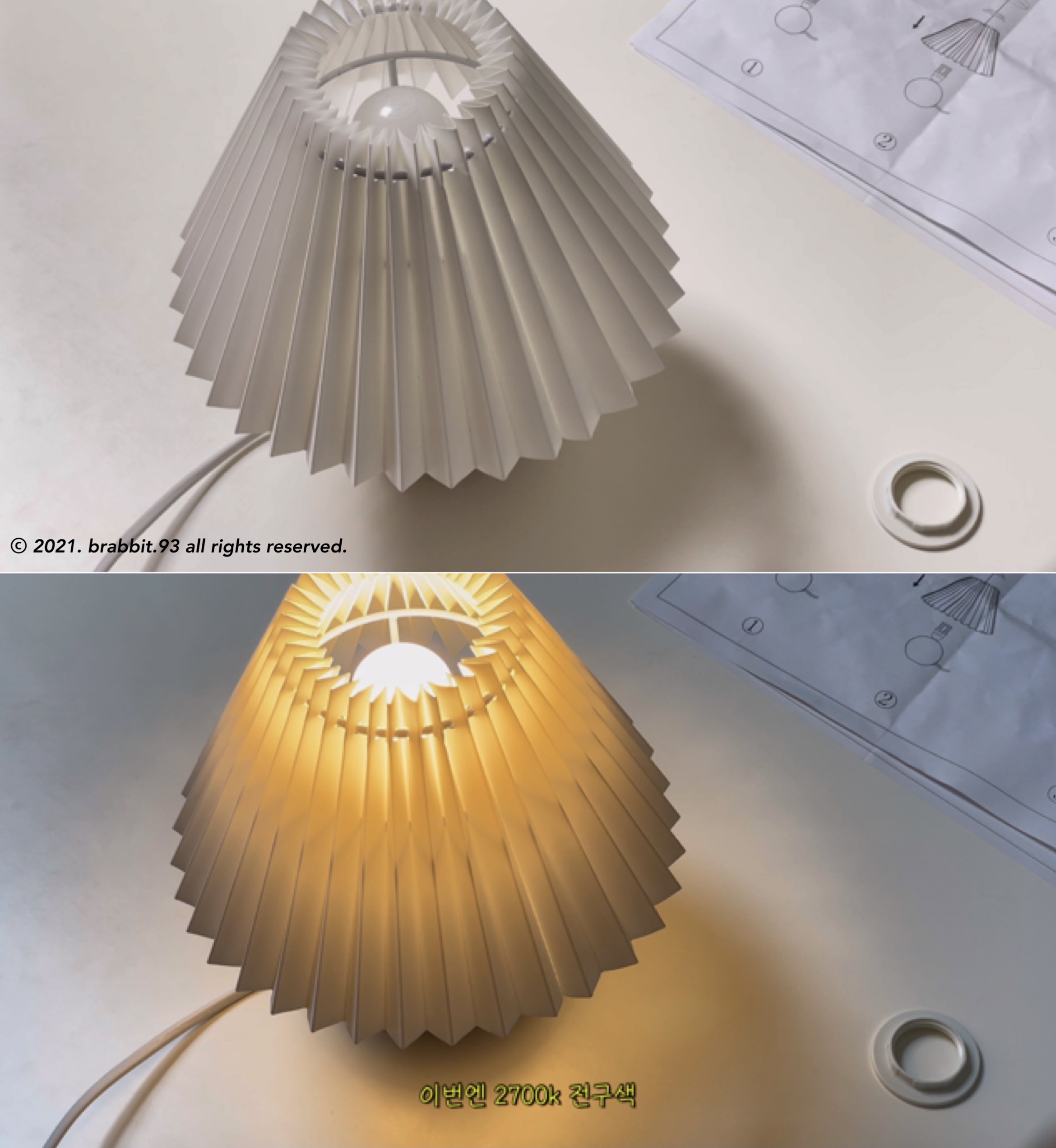 이번엔 2700K 전구사용. 주황빛은 덜 하지만 밝기가 훨씬 세다.