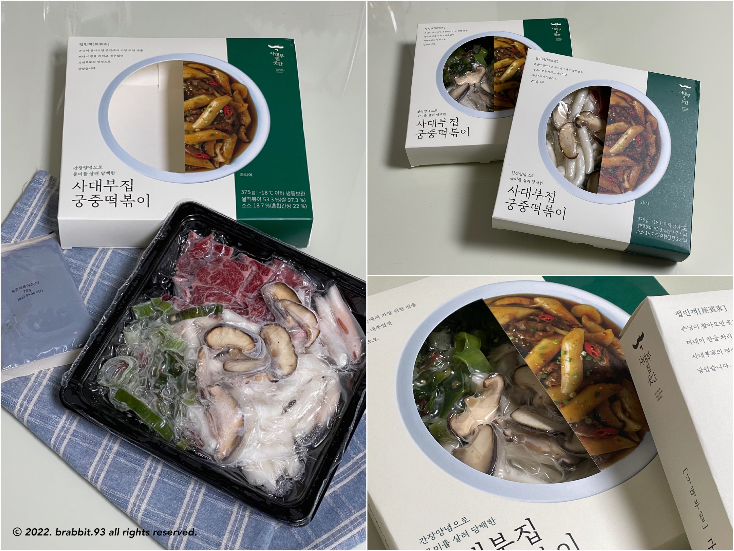 궁중떡볶이는 조리된 이미지와 재료가 반반씩 보여서 한눈에 보기 더 좋았고 구성이 재밌었다. 얼른 조리해서 먹어보고 싶은 심리가 생긴달까ㅋㅋ 담백한 간장양념이 기대됐다.